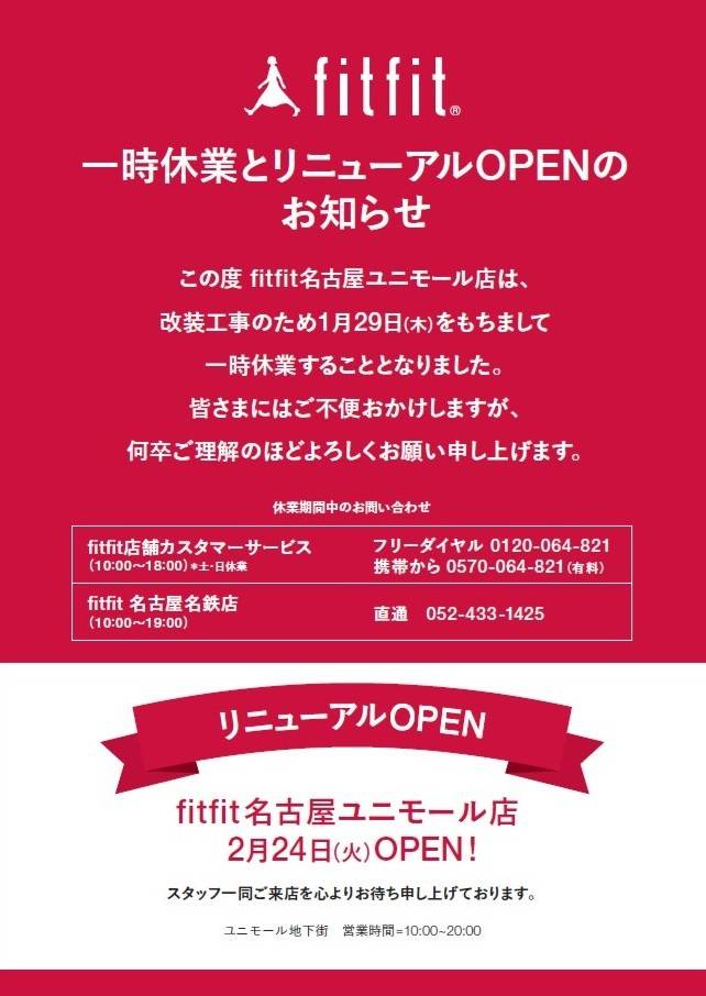 fitfit 名古屋ユニモール店 2月24日(火)OPEN!