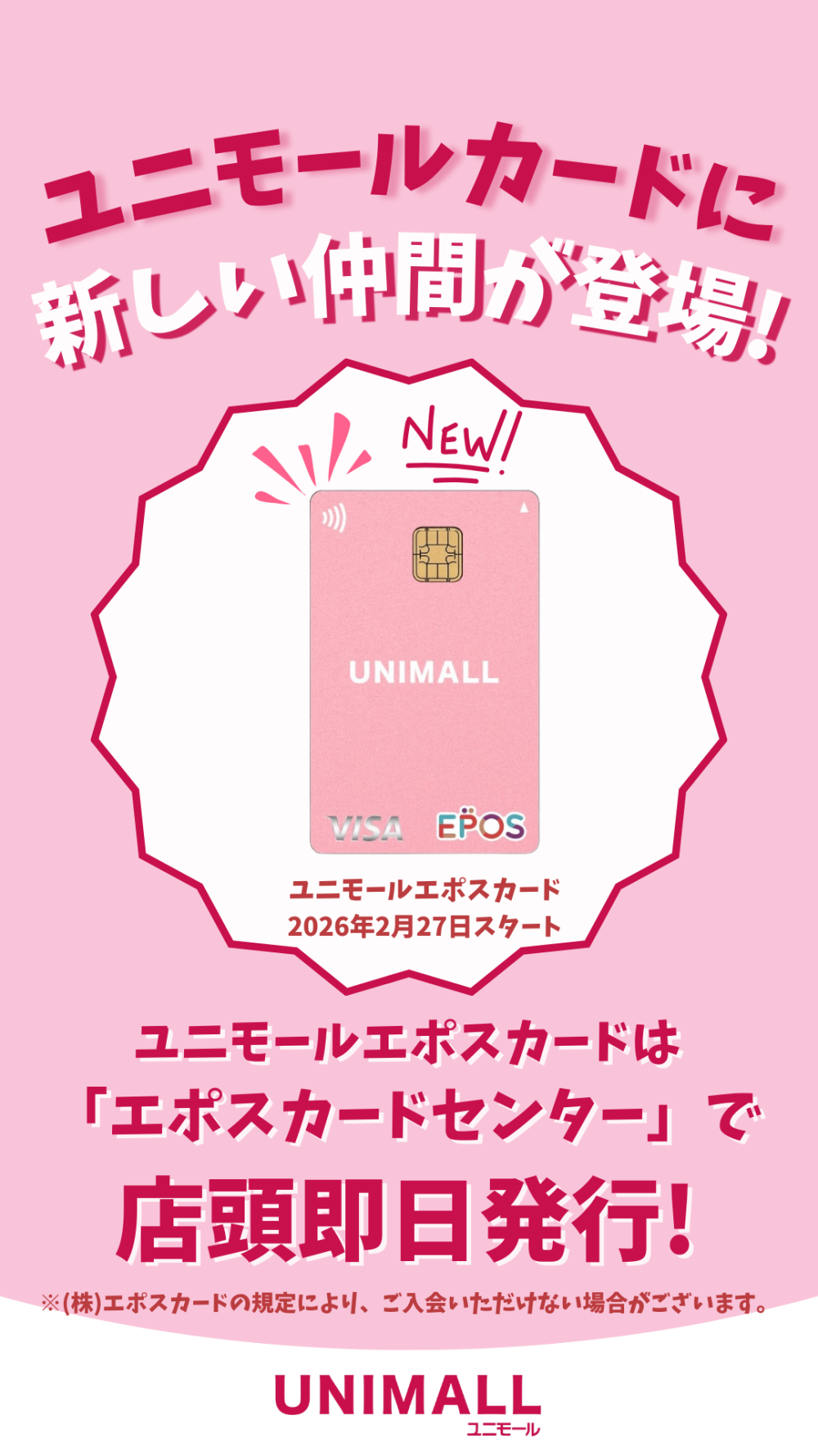 おトクな特典がいっぱいのユニモールエポスカードが2026年2月27日にデビュー!