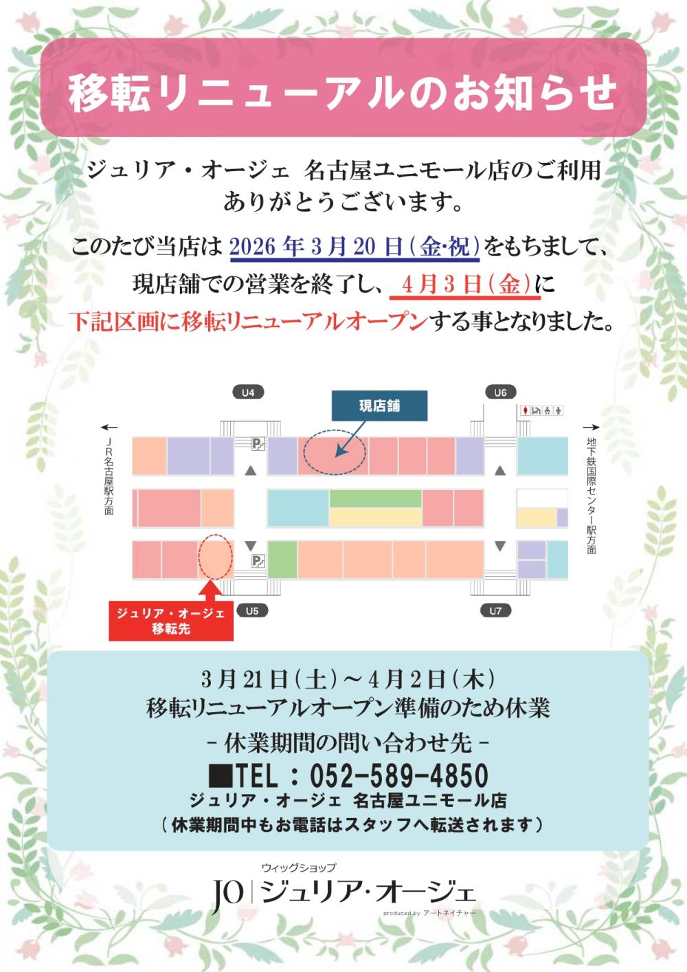 【ジュリアオージェ】移転オープンのお知らせ